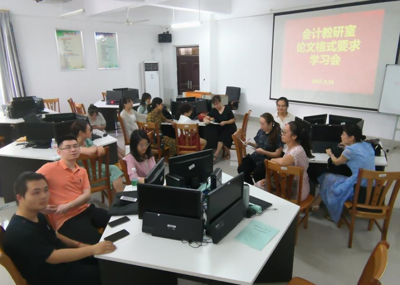 为提高毕业论文质量,规范毕业论文工作,会计教研室于9月26日下午在实训楼B205和B305室分别以公开课和主题讨论的形式完成学生层面和指导老师层面的论文格式要求的学习。