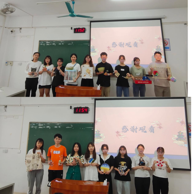 6月26日早上9:00,会展经济与管理专业20级在6305开展文创产品成果展示活动。同学们以小组形式展示汇报此次实训成果,主要围绕钦州坭兴陶、三娘湾海豚、竹编技艺、农耕文化、剪纸文化、民族服饰文化等元素进行文创产品设计,充分地融入了各类传统文化元素,产品形式多样、创意十足。
