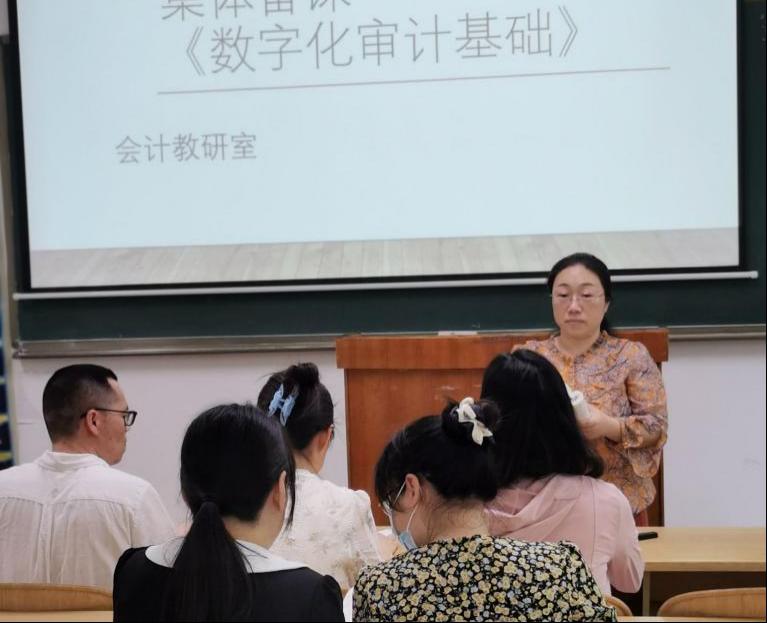 活动中,向芸老师分享了《数字化审计基础》专业课备课情况。老师们从过程设计、组织实施、备课方式和内容、课件优化、思政内容引入、优点与不足等方面对本次集体备课活动进行交流讨论。