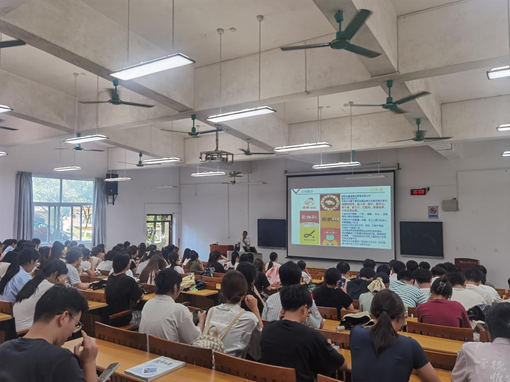 深圳市鑫道餐饮管理有限公司副总经理韦良成系统介绍了公司在连锁运营、餐饮管理服务领域等核心业务,并重点解读了市场调研、品牌推广等岗位的能力要求,为学生勾勒出餐饮营销岗位的职业画像。广西麦当劳餐厅食品有限公司人力资源部经理林振荣通过品牌宣传视频与互动问答,分享门店客户管理、数字化营销经验,展现了国际连锁品牌的企业文化与工作场景,并详细介绍了薪资福利、培训计划及晋升体系,激发了学生对职业发展的清晰规划。