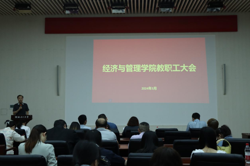 3月29日,经济与管理学院在图书馆报告厅召开全体教职工大会。学院领导班子及全体教职工参加会议,会议由学院党总支书记张凯主持。