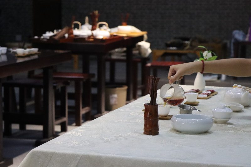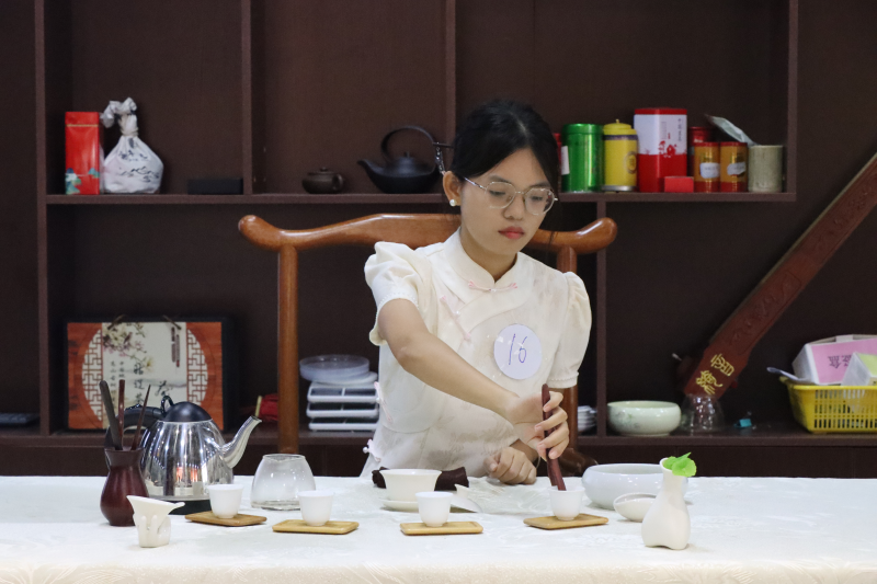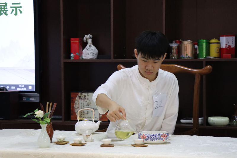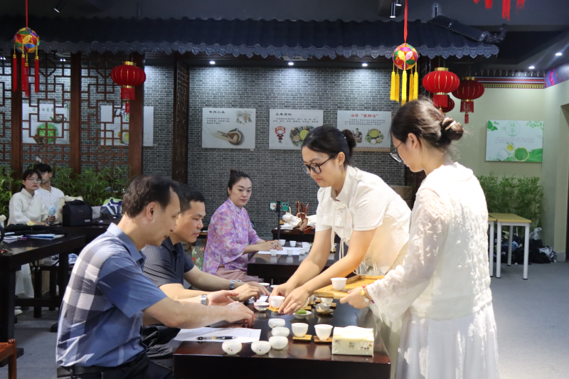 6月19日下午,经济与管理学院旅游管理专业在实训楼B203茶艺室开展“茶艺与评茶课程展示”活动。本次活动采用线上直播与线下观看相结合的方式进行,太阳集团2138副校长梁尚尉、电气与电子工程学院党委书记黄薇薇、经济与管理学院院长周子平和专业指导老师梁勤出席活动并担任评委。