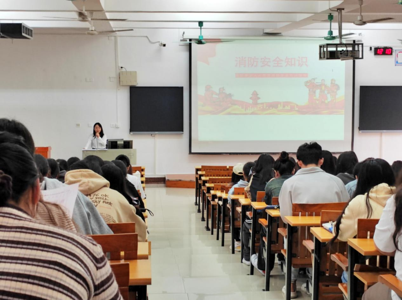 课上,辅导员结合火灾的主要危害、火灾的预防和应急处理办法,以及消防灭火器材的使用开展安全主题教育,督促同学在日常的学习生活中注意防火防盗等安全隐患,从源头预防火灾等安全隐患的发生,并通过不断学习消防灭火技能,提高火灾预防的应急处理能力。