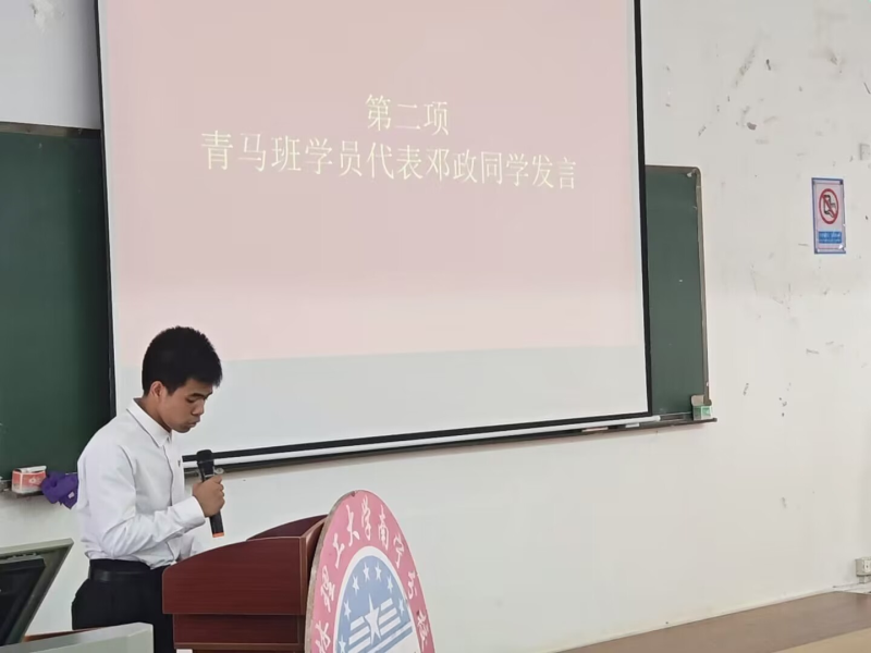 会上,青马班学员代表邓政发表了对青马班的祝愿,希望通过本次“青马班”的培训,各班学生干部认真学习理论知识,提升思想觉悟,树立正确的价值观,自觉履行职责,发挥带头示范作用。随后,经济与管理系团总支书记陆吉瑞老师宣读班委任命名单。