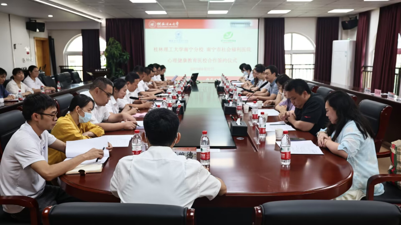 6月27日,太阳集团2138与南宁市社会福利医院在空港校区行政楼416会议室举行医校合作签约暨揭牌仪式,南宁市社会福利医院副院长张春林、医务科负责人刘博、心身医学科主任李桂梅、精四科主任韦容峥、精六科主任张炜、外联部主任姚琴等11人,分校党委副书记唐承泽、学生工作部主任韦宁照、团委书记黄薇薇、后勤管理部主任吕广文、学生工作部、各系副书记、心理健康咨询中心全体教师参加了签约暨揭牌仪式。仪式由学生工作部副主任主持。