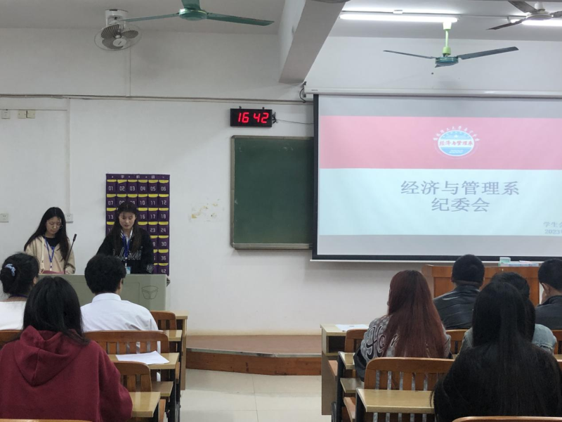 4月17日,经济与管理系在空港校区1506室组织召开2022级纪委会。系党总副书记兼学工组组长陈曙钰、系团总支书记陆吉瑞、系辅导员秦敏、宋春雨出席会议。学生会纪检部、2022级班长、纪委参加会议。