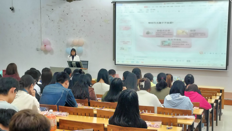 何珍珍老师以两性知识为切入点,为同学们揭开了生理知识的神秘面纱,强调女生应培养自尊、自爱及提高自我保护意识。她以丰富的专业知识、通俗易懂的语言给在座师生打造了一场知识盛宴。吴振婷老师讲述了国家重视女性方面的内容以及女性地位的提高,勉励当代女大学生要独立,自信,学会关爱自己,做一个情绪稳定的人。讲座过程中,同学们积极参与互动,洋溢着当代大学生的积极向上的学习生活热情。活动现场气氛热烈,师生收获颇丰。