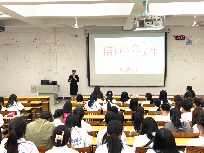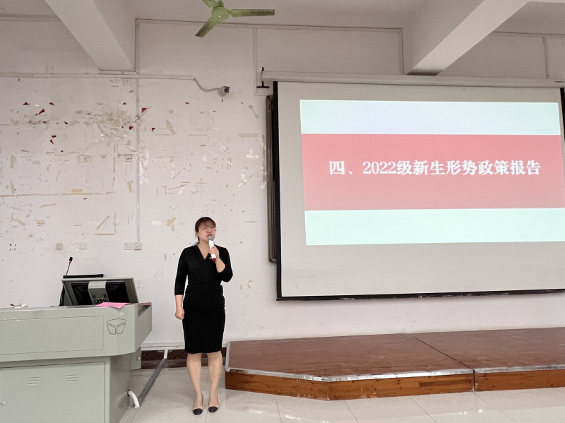 会上,系党总支书记张凯作题为“信仰点亮人生”的专题报告。张凯书记以新环境引入,从男女比例、民族、年龄、政治面貌等方面介绍2022级新生概况;从高等教育在校学生数据、学情变化及带来的影响引出时代之问,向全体2022级新生讲明新时代的特征;从习近平总书记在党的二十大报告中对青年人的号召引出时代要求,学习党的二十大重要论述,教育和引导新生要顺应时代的号召,做有理想、敢担当、能吃苦、肯奋斗的青年人;从百年党史波澜壮阔的进程中引出信仰之问,引导新生要提高政治站位,赓续红色基因,擦亮青年政治底色,以实际行动积极向党组织靠拢。她希望同学们要以党的二十大精神为指引,在实现中华民族伟大复兴的伟大征程中贡献青年人的智慧和力量。