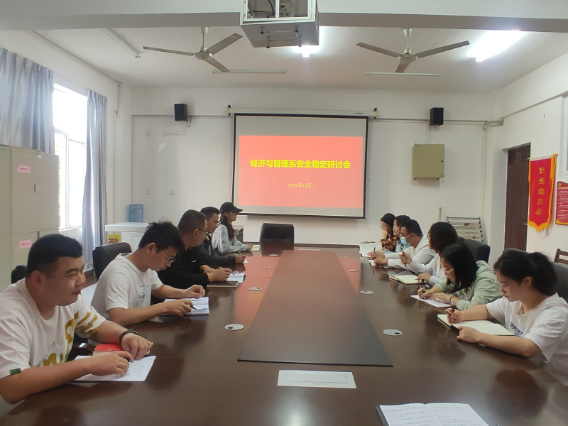 11月9日,经济与管理系在7210会议室开展安全稳定研讨会,全体学工组成员参会。会议由党系党总支副书记兼学工组组长陈曙钰主持。