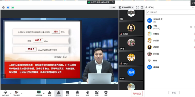 为深入学习《关于加强新时代廉洁文化建设的意见》,引导教师强化廉洁自律意识,牢固树立廉洁价值理念,以理想信念强基固本,以文化涵养启智润心,以高尚道德砥砺品格,11月中下旬,我系领导班子、辅导员、行政管理人员、各教研室以专场学习的方式开展“师德大讲堂”2022年(第2期)学习会,观看学习了周磊主讲的《高校腐败重点领域的廉政风险防控》的网络直播课。