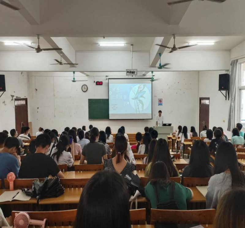 会上,丘雪萍老师强调了2022-2023学年家庭经济困难学生认定工作需要注意事项及申请表填写的问题,李航宇同学讲解了关于国家助学贷款,国家奖学金,国家励志奖学金,国家助学金,自治区人民政府奖学金,服兵役高等学校学生国家教育资助的对象,额度,办理流程,贷款期限,申清、审批、发放流程和相关事项,以及广西高等学校毕业生学费和国家助学贷款补偿资助政策。