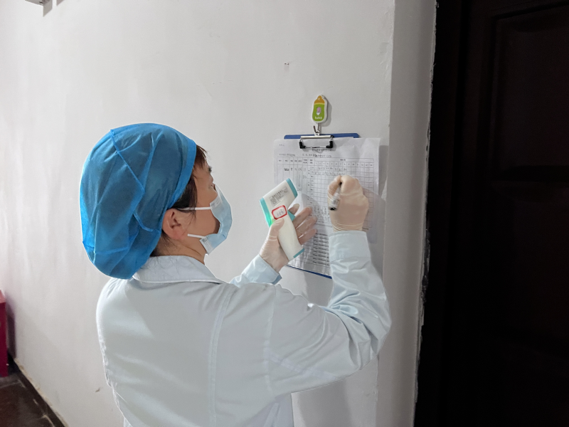 工作人员进行体温检测工作现场