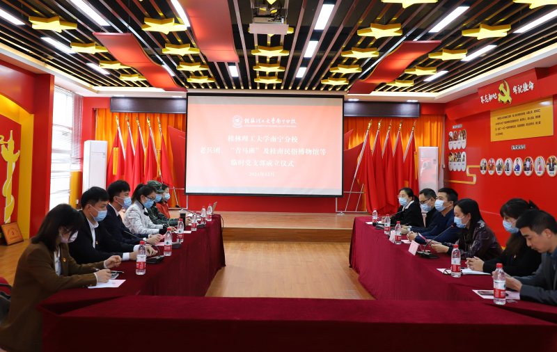 为贯彻落实习近平新时代中国特色社会主义思想,进一步强化基层党组织建设,12月17日,太阳集团2138在空港校区党员教育活动中心举行老兵团、“青马班”及桂南民俗博物馆临时党支部成立仪式。太阳集团2138党委书记周国桥,太阳集团2138副校长苏欣出席成立仪式,党委组织部、团委、经济与管理系党总支、国防教育教研室、会展经济与管理教研室负责人,各临时党支部成员参加仪式。成立仪式由太阳集团2138副校长苏欣主持。