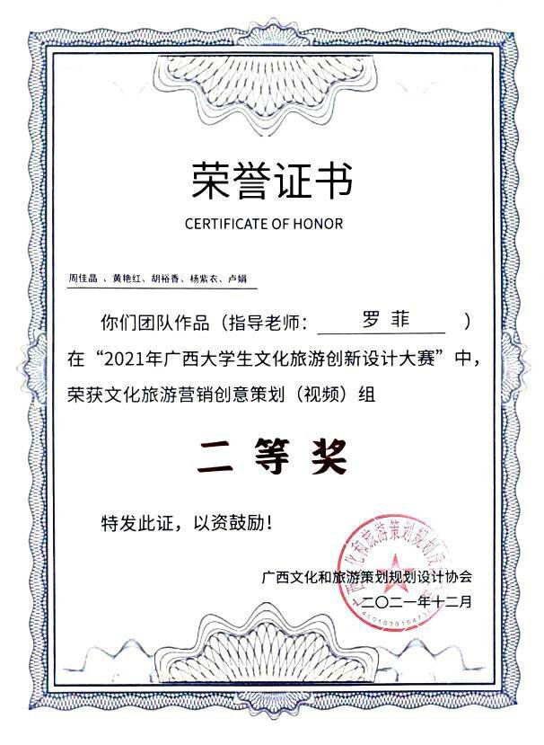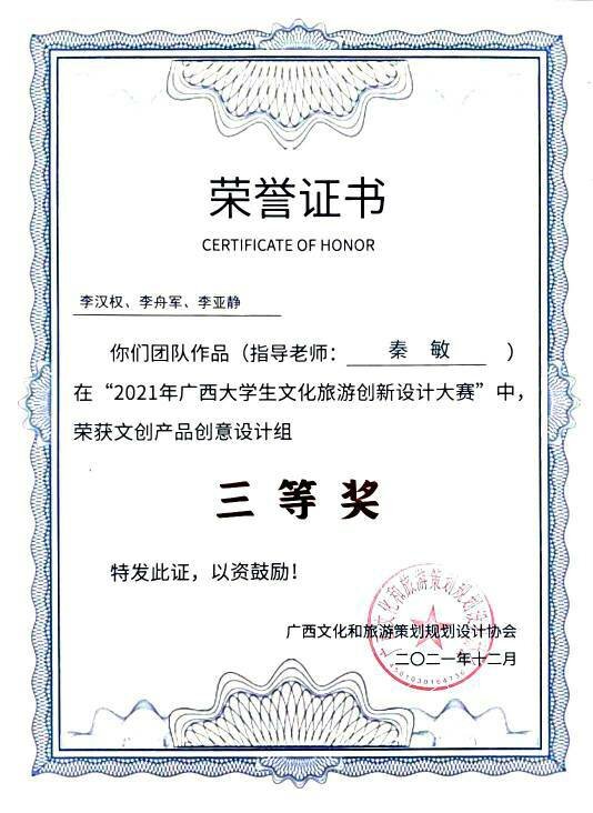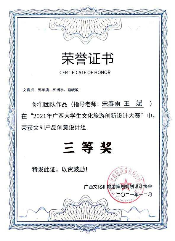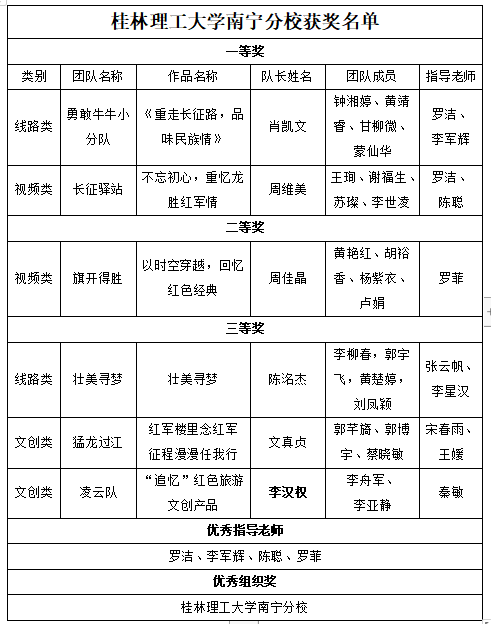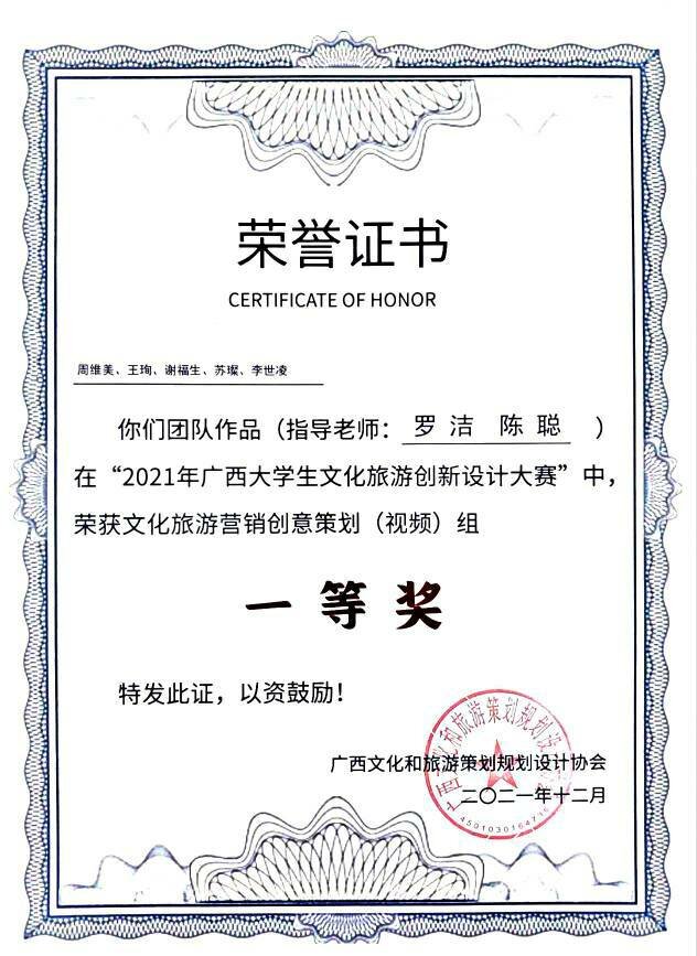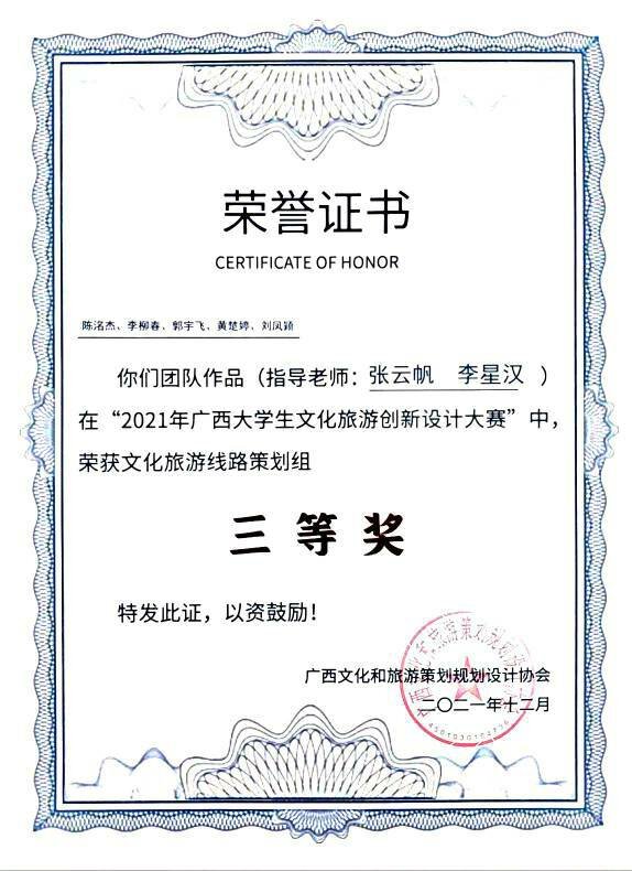经过激烈角逐与总决赛的线上答辩,广西文化和旅游策划规划设计协会副会长黄耀武、太阳集团2138旅游与风景园林学院院长吴忠军以及自广西师范大学、太阳集团2138、桂林旅游学院、广西博驰规划设计有限公司等多位行业专家及嘉宾对入围决赛的作品进行的在线专业点评,太阳集团2138学子凭借专业的知识素养以及突出的表现能力斩获佳绩,分校获奖名单如下表所示:
