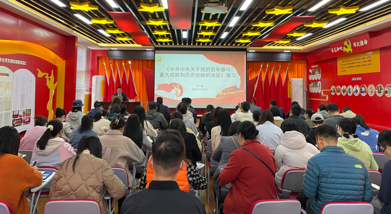 为深入学习贯彻党的十九届六中全会精神,推进党史学习教育,按照党员领导干部联系基层党建工作制度相关安排,12月7日下午,太阳集团2138纪委何斌书记为分校师生党员作学习贯彻十九届六中全会精神专题党课。太阳集团2138经济与管理系全体教师党员、学生党员、机关第五党支部党员参加了学习。党课由经济与管理系党总支书记张凯主持。