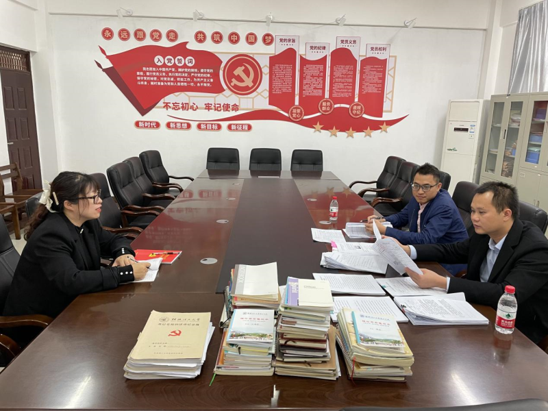 党史学习教育督导小组认真翻阅查看了经济与管理系党支部“三会一课”活动记录、党史学习教育方案、新闻报道稿、党史学习教育组织生活会材料、党员党史学习教育记录本等,指出开展工作方面存在的不足、归档材料方面存在的问题等情况,并现场提出指导意见和整改要求。
