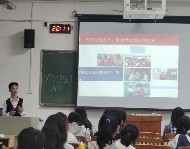 宣讲中,党员们结合自身经历分享了大学学习、生活经验及入党后的内心转变,希望新生们能及时调整心态,充分认识到学习在大学生活中的重要地位,同时讲述了系部学生党员及积极分子利用假期参与抗疫志愿者、参观革命纪念馆、重温红色文化基地等活动,展现党员及积极分子在党史学习教育和公共事务参与中的积极性、在实际行动中的责任担当。也希望同学们努力向上、坚定信仰,认真学习,服务师生,争取早日成为一名光荣的共产党员。