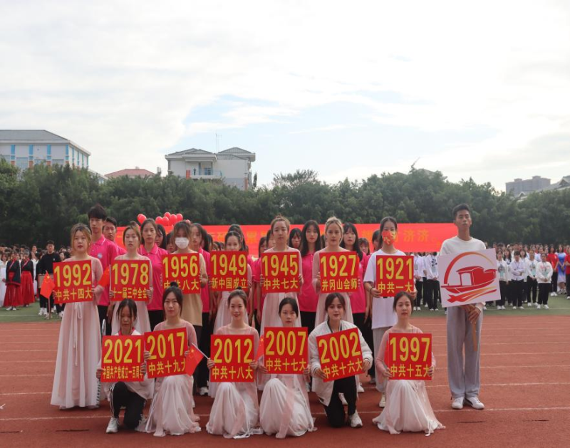 上午9点,在啦啦队和后援团的阵阵欢呼声中,经济与管理系的方阵队昂首挺胸的迈着铿锵有力的步伐进场,方块队以“奥运会”为主题,多样运动元素的结合,向观众展示着经管系学子特有的运动竞技精彩;回顾百年党史发展历程,致敬光辉历程,以信仰之光照亮前行之路,接续谱写新征程的历史篇章,展现经管学子的热血沸腾和朝气蓬勃。