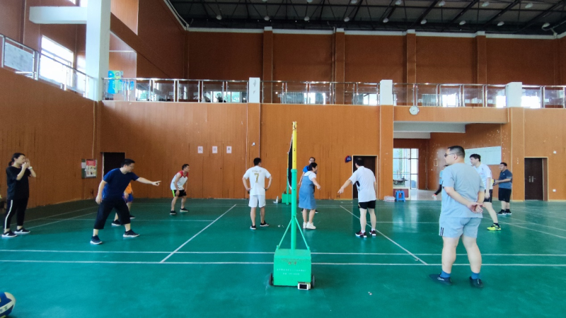 随着清脆的哨声响起,比赛正式开始。本着“友谊第一、比赛第二”的原则,老师们纷纷拿出自己的绝招,扣球、发球、一传、二传,每个环节都尽力发挥,严谨认真,充分展现了团结和谐的良好风尚和文明健康的精神风貌。老师们在场上挥汗如雨,互相配合,沉着冷静,展现了一场精彩纷呈的比赛。