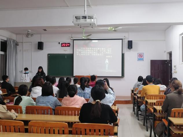 为深入贯彻落实习近平总书记关于大力加强对党忠诚教育的重要指示精神,教育引导广大党员认真学习党史。4月18日晚上20:00,经管系党总支在上善楼203室组织党员观看“奋斗百年路,忠诚印寸心”对党忠诚教育情景党课直播。我系辅导员罗欢老师、秦敏老师以及在校学生党员参加会议。