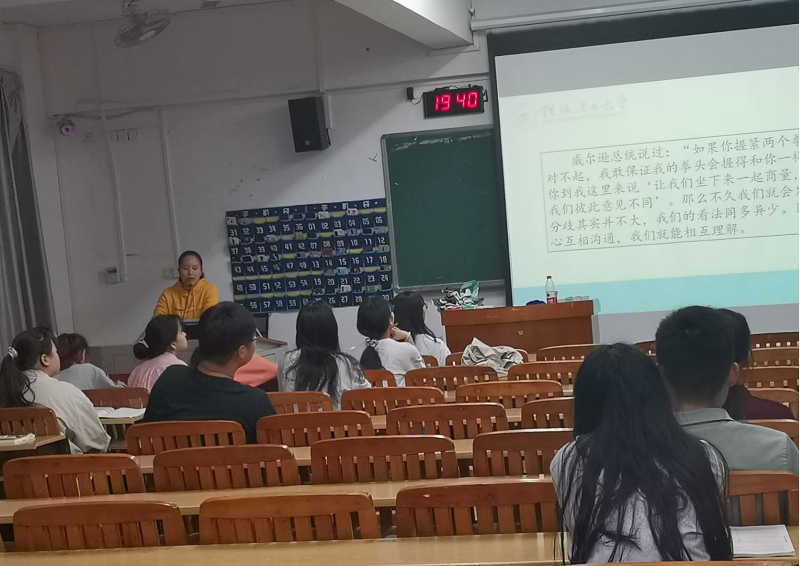 林靖老师在课上为同学们阐述了友善的内涵,她提出,“学会做人比做学问更加重要。”在生活中,要学会友善待人,循循教诲大学生不仅要进行知识的汲取,更要开拓人际圈子;同时提醒大家要提高自我防范意识,树立“安全第一”的意识。