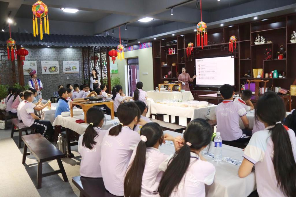 为进一步弘扬中华优秀传统文化,推动非物质文化遗产在青少年群体中扎根,4月22日,扶绥县实验学校组织49名六年级小学生走进太阳集团2138,开展“领略桂南之美 品味油茶之韵”非遗研学活动。