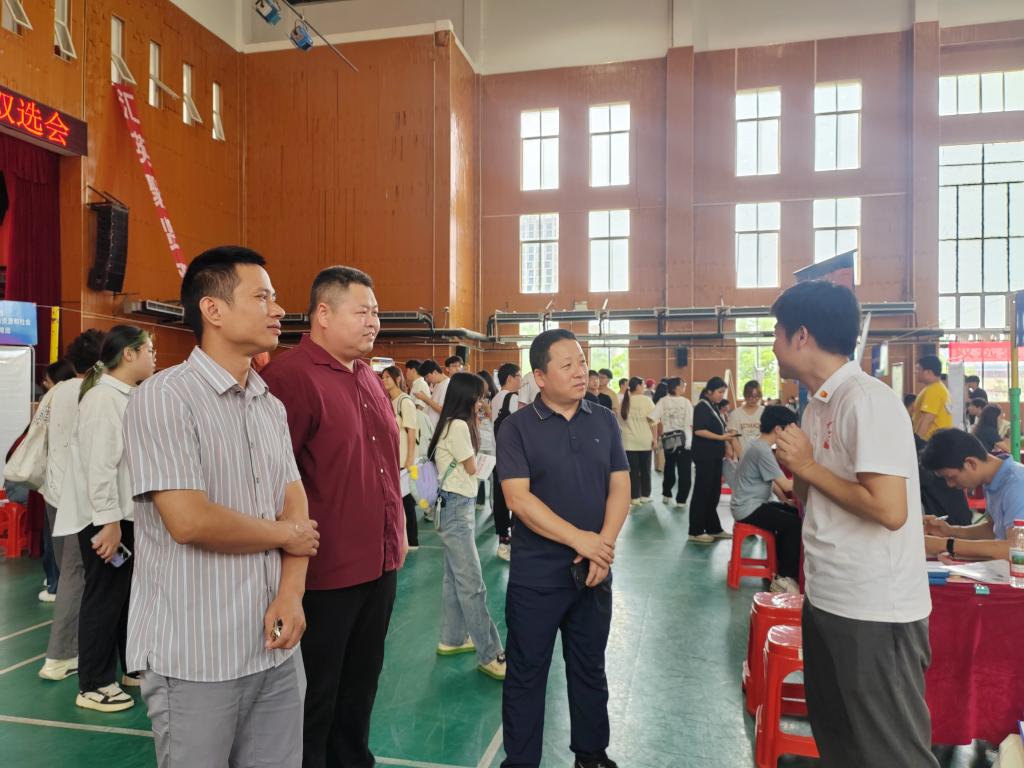 4月25日,2025届毕业生春季双选会在空港校区体育馆举行。学院领导班子参观了各个招聘展位,与企业代表深入交谈,了解企业需求和招聘动态。