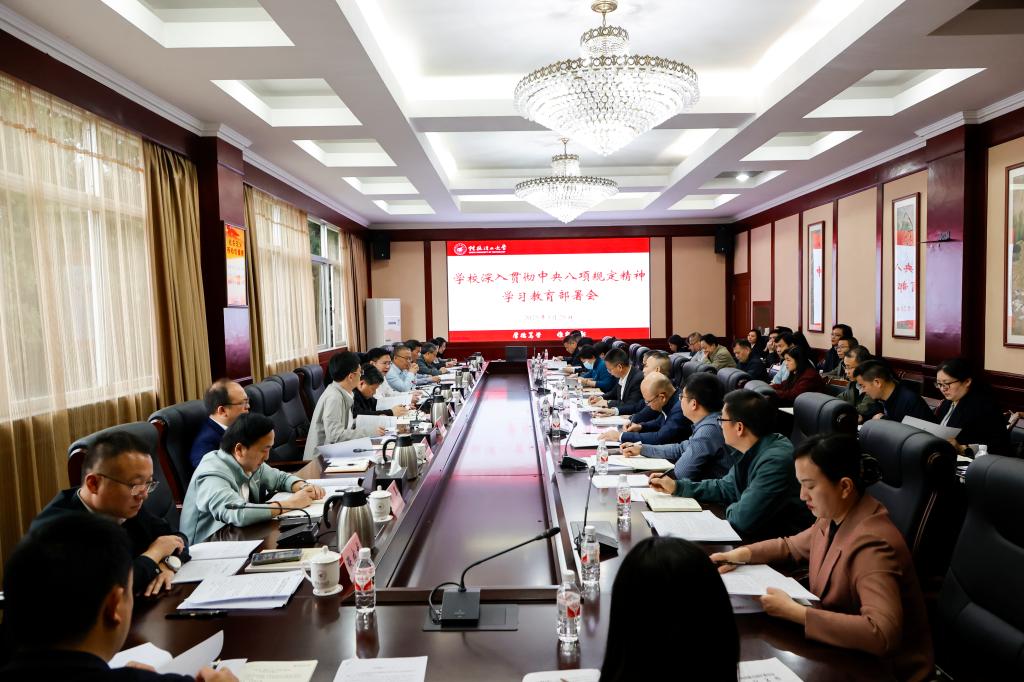 3月28日,学校在屏风校区教八楼三楼会议室召开深入贯彻中央八项规定精神学习教育部署会,认真学习贯彻习近平总书记关于深入贯彻中央八项规定精神学习教育的重要讲话和重要指示精神,贯彻落实党中央和自治区党委部署安排,部署学校学习教育工作。校党委书记农毅主持会议并作动员部署讲话。