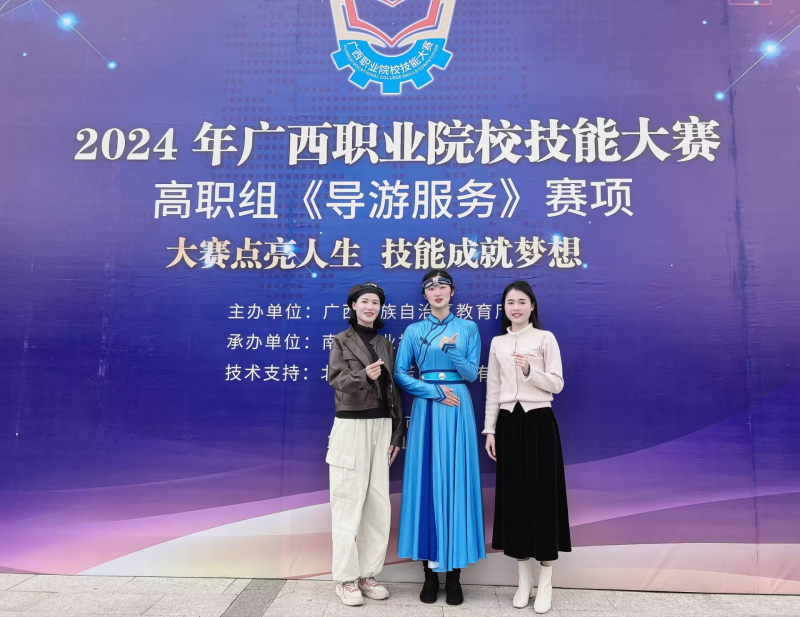 近日,2024年广西职业院校技能大赛高职组《导游服务》赛项成绩揭晓。经济与管理学院2022级旅游管理专业张嘉赫同学在指导老师的耐心指导下,凭借稳定的发挥和过硬实力荣获二等奖。本项比赛主要进行理论考核、才艺表演、导游词创作、自选景点现场讲解、英语对话等多项考核。