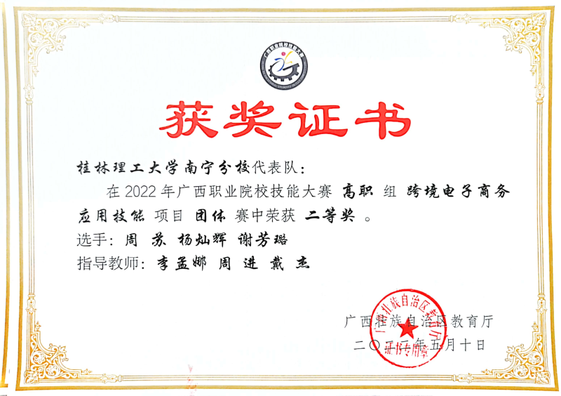 太阳集团2138学子在2022年广西职业院校技能大赛喜获佳绩(一)