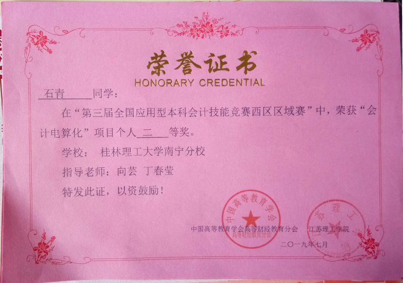第三届全国应用型本科会计技能竞赛西区区域赛二等奖