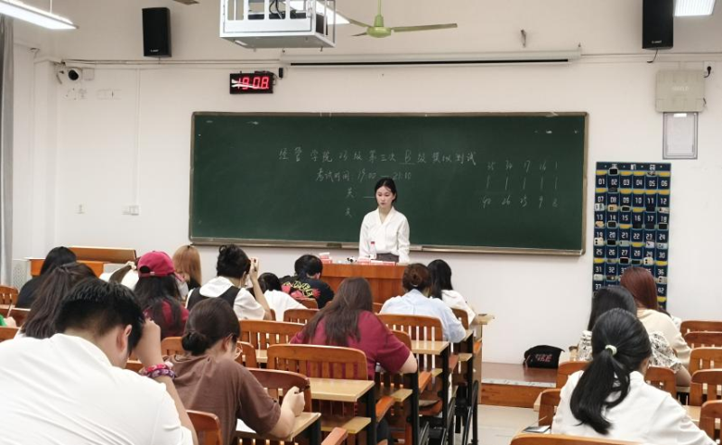 为全面落实立德树人根本任务,抓实推进“三风建设”工作,扎实开展学院“学风一体化”工程,5月19日晚学院组织开展了本学期第二次英语等级模拟考试,考试工作人员由学院各支部党员和入党积极分子组成,2023级全体学生参加考试。