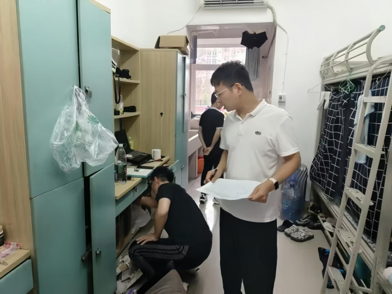 本次宿舍检查工作主要包括学生宿舍卫生及消防安全隐患排查。检查过程中,检查人员深入学生宿舍与学生亲切交流,询问学生近期的学习情况,仔细检查学生宿舍的消防基础设施及卫生情况,并就检查结果向相应的宿舍成员提出整改建议,勉励学生为营造“美丽社区”贡献出自己的一份力。