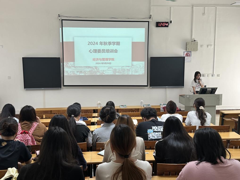 为高效开展心理健康教育,提高心理委员工作的专业认知,完成开学初心理排查工作,9月26日,经济与管理学院在8103召开心理委员工作培训会。本次会议由学院负责心理健康工作的潘倩雯老师主持,各年级在校心理委员参与本次会议。