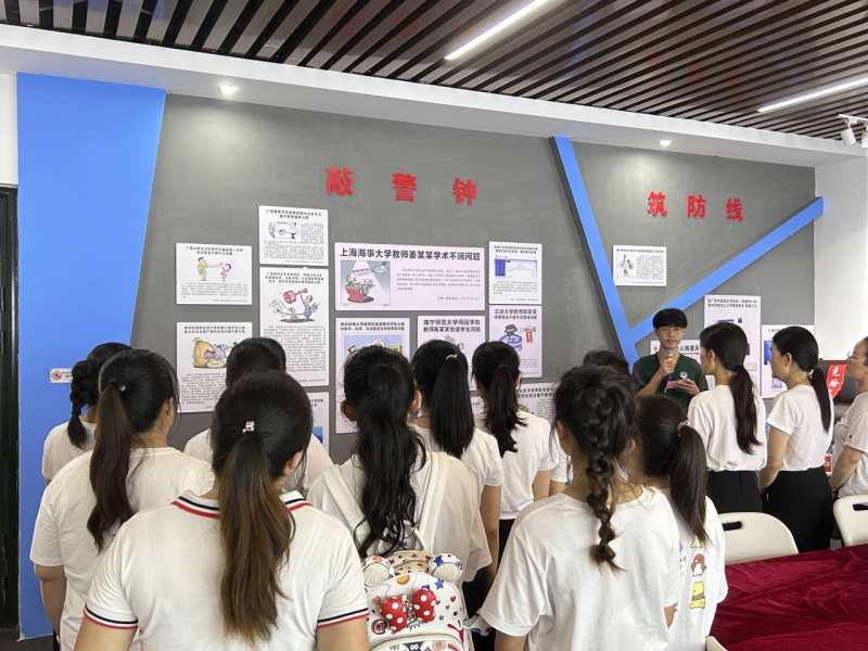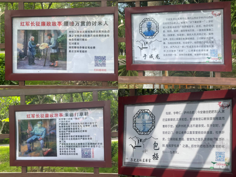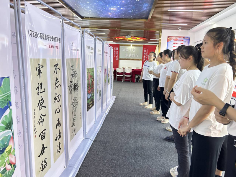 随后,大家跟着讲解员来到了廉政文化长廊,沿着长廊逐一阅读了“清风亭、正气亭、廉韵亭、洁采亭”。长廊中一景一特色,廉洁文化元素贯穿始终,全体人员仔细观看照片和文字,在潜移默化中受到廉洁文化的熏陶,有效提升了老师们崇廉尚廉、拒腐防变的思想意识。