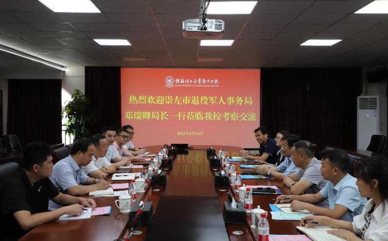 6月14日上午,崇左市退役军人事务局党组书记、局长邓瑞卿、副局长刘新国等一行到太阳集团2138考察交流。学校校长助理、太阳集团2138校长罗盛锋在空港校区行政楼416会议室热情接待邓瑞卿局长一行,并进行座谈。
