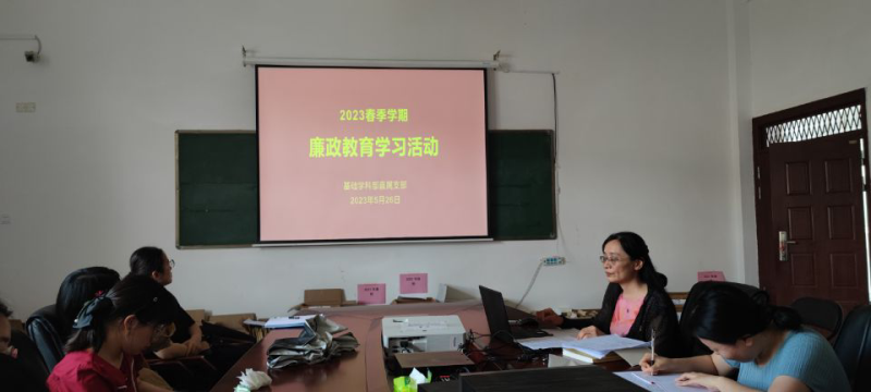 为深入学习贯彻党的二十大精神和习近平总书记在二十届中央纪委二次全会上的重要讲话精神,全面推进“清廉桂工”建设。5月26日下午,基础学科部直属支部在8409开展廉政教育学习活动。活动由基础学科部直属支部书记黄昭彦同志主持,基础学科部直属支部委员、各教研室主任(党员)参加了活动。