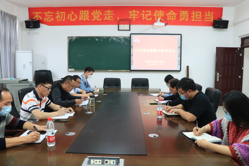 5月11日下午,机械与控制工程系在藏修楼3205会议室召开作风建设暨警示教育会议。系党总支书记谢晓明主持会议,系部领导班子、党总支委员、各党支部书记参加。
