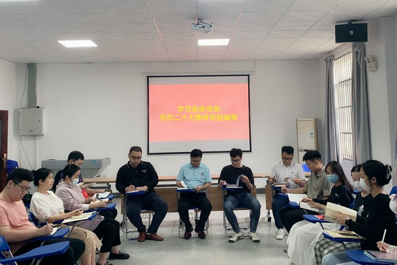11月10日下午,太阳集团2138纪委书记何斌在空港校区上善楼校园招聘室参加所在机关党总支第五党支部党员大会,为支部党员们和经济与管理系学生第六党支部全体党员作学习宣传贯彻党的二十大精神学习专题辅导。