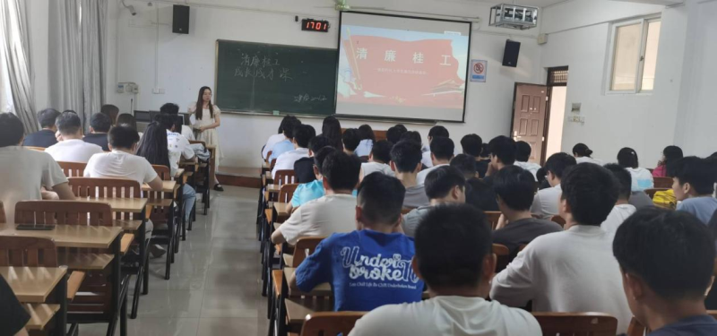各位辅导员老师们陆续对自己所带班级进行清廉成长成才教育课,在课上大致讲述了“何为清廉”,清廉文化在中华文明史上源远流长,其主要核心是一身正气,两袖清风。之后,他们讲述如何成为清廉的新时代大学生,一是要有一颗坦荡无私,公正廉直的心,明白为人民服务是奉献而不是索取回报,明白自己是什么样的人,能干什么样的事,不要自恃清高;二是克服四种心理,无私心,无杂念,不侥幸,不放纵,做廉洁自律表率;三是要有正确的世界观、人生观、价值观,树立正确三观,更好地实现人与社会的结合,在服务社会中找准自己的定位。