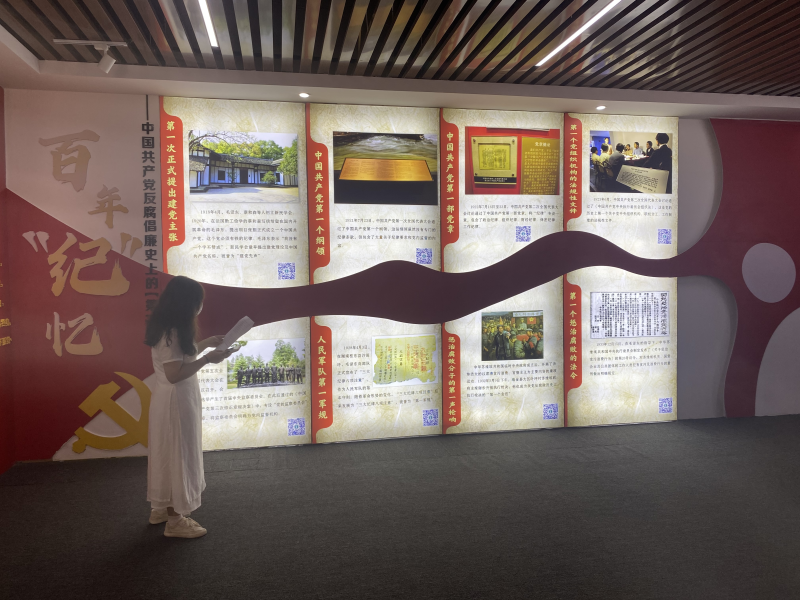接着,各位党员同志跟随讲解员覃媛同志的脚步先后参观了“伟人谈廉政”“百年‘纪'忆”“忠诚·守纪”“尽责·担当”“传承·奋进”等10个主题板块,通过一篇篇图文介绍,党员同志们切实从中得到了警醒、受到了教育,防微杜渐、守住底线,自觉抵制各种诱惑和腐蚀。
