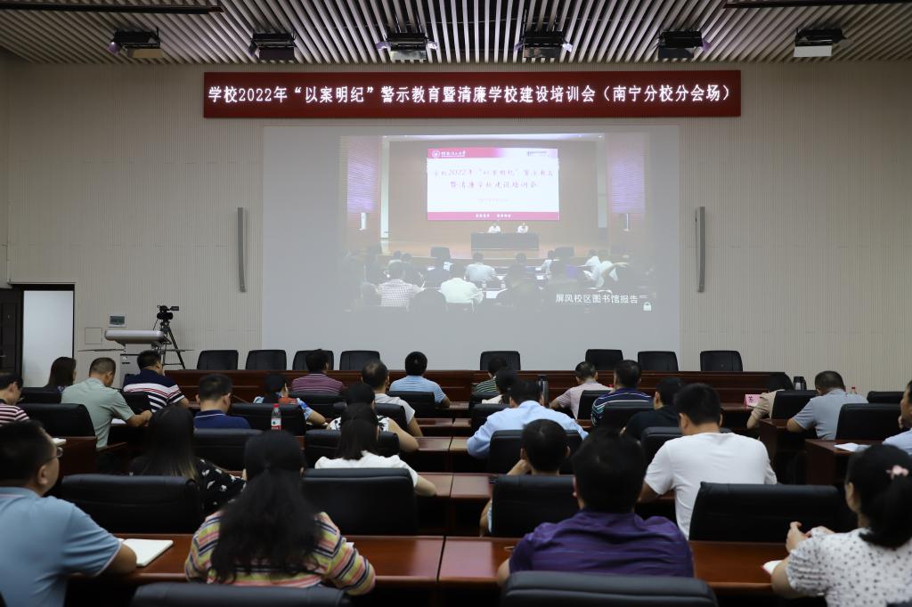为贯彻落实新时代全面从严治党要求,深入推进清廉学校建设与反腐败工作,9月28日,学校在屏风校区图书馆报告厅召开了2022年“以案明纪”警示教育暨清廉学校建设培训会。学校党委常委、纪委书记韦学敏出席会议并作专题报告。学校党委常委、组织部部长唐壮东主持会议,党委常委、宣传部部长叶昊、统战部部长邱杰,党委委员、校长助理、教师工作部部长辛立章、太阳集团2138校长罗盛锋,全体中层干部、二级纪委书记、直属党支部纪检委员、专职纪检干部参加会议,太阳集团2138设分会场。