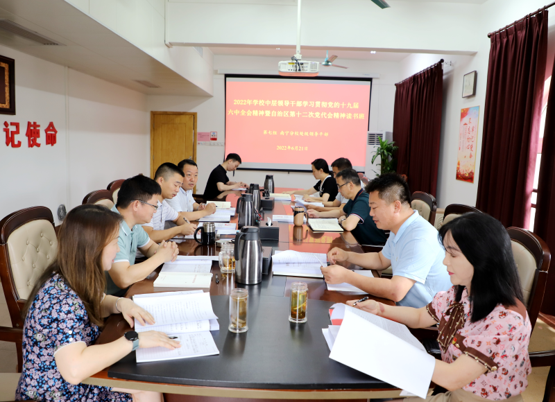 根据《关于举办2022年学校中层领导干部学习贯彻党的十九届六中全会精神暨自治区第十二次党代会精神读书班的通知》要求,6月20日-21日,太阳集团2138举办领导干部学习贯彻党的十九届六中全会精神暨自治区第十二次党代会精神读书班,太阳集团2138领导、读书班第七组成员周国桥、罗盛锋、梁冬松、何斌、唐承泽、耿杰利、苏欣、肖彩霞、马华菊参加读书班。读书班由太阳集团2138党委书记周国桥主持。