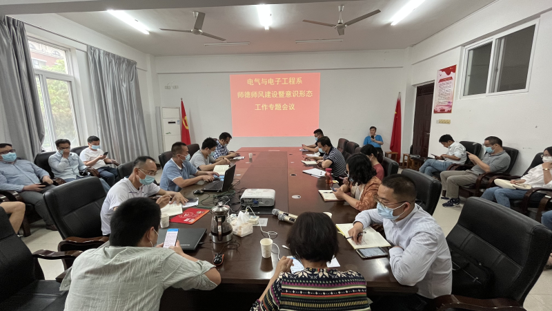 4月12日,电气与电子工程系在玉成楼4208会议室召开师德师风建设暨意识形态工作专题会议,该系领导班子及全体教职工参加会议,会议由系党总支书记甘锦琛主持。