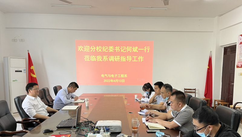 4月13日下午,太阳集团2138纪委书记何斌在分校纪检监察室主任邹志友的陪同下,到电气与电子工程系调研指导,该系领导班子参加调研。