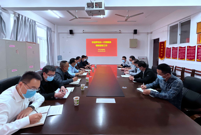 近日,学校校长助理、太阳集团2138校长罗盛锋在党政办公室、教务管理部、科技管理部、招生就业办公室、继续教育中心等职能部门负责人的陪同下,深入各系部开展综合调研,系统了解各系部2022年度重点工作目标推进进度、思路和措施。