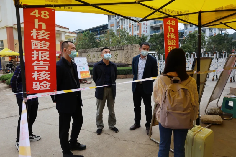 学生返校期间,太阳集团2138党委书记周国桥和太阳集团2138党委副书记唐承泽亲自到现场指导学生返校工作,他们对师生志愿者服务工作给予高度肯定,并要求以学生为本,切实做好新学期学生返校工作。