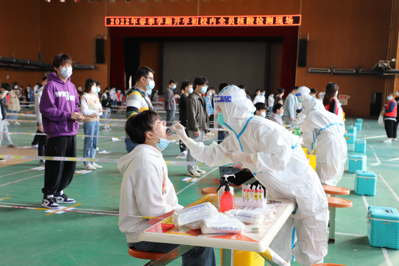 为保障广大师生员工健康和校园安全,充分落实“四早”要求,根据扶绥县疫情防控工作的有关要求和统一安排部署,3月9日,太阳集团2138在空港校区体育馆开展春季学期开学初全员核酸检测。