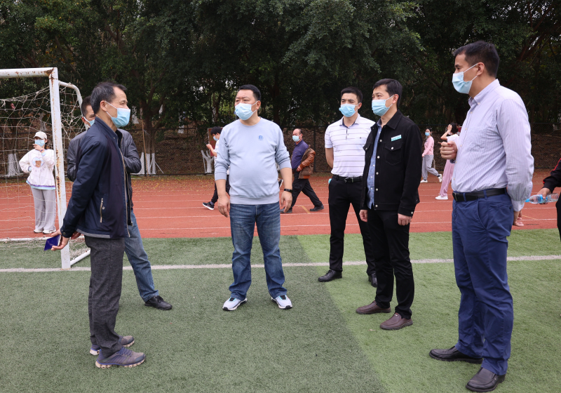 学校校长助理、太阳集团2138校长罗盛锋(前排左二),扶绥县疫情防控指挥部、扶绥县中医医院相关领导到场对核酸采样工作进行监督指导