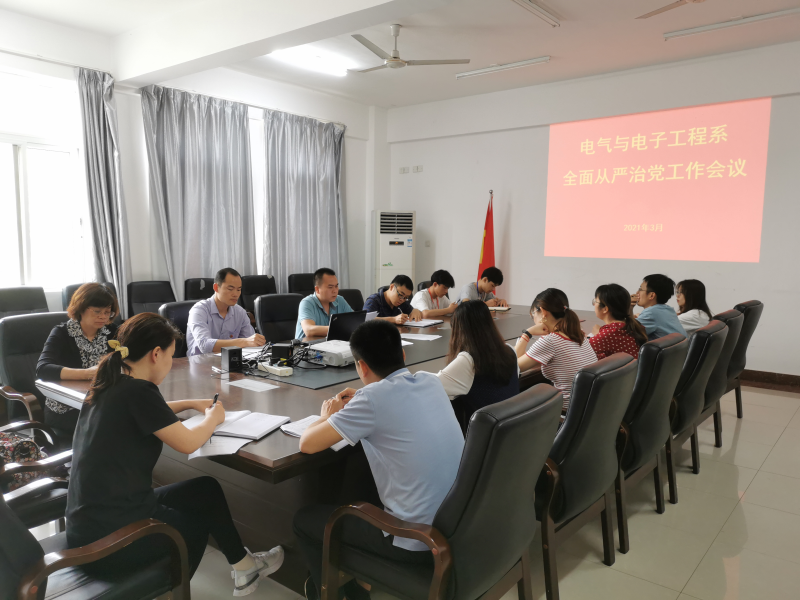 3月31日下午,电气与电子工程系党总支书记甘锦琛在4208会议室主持召开2021年系部党建工作暨全面从严治党工作会,系部领导班子、系党总支委员、各党支部委员及党务工作中心学生干部参加会议,会议由甘锦琛书记主持。